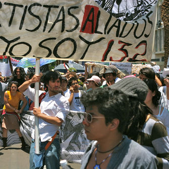 El final de este sexenio y el muy articulado regreso del PRI al poder, marcaron un momento esencial en la toma de conciencia de una gran parte de la comunidad teatral, de esta forma la incidencia en las manifestaciones en contra de la posible llegada del telecandidato Enrique Peña Nieto a la presidencia, mostraron una postura por parte de la comunidad teatral que de manera enérgica tomó la palabra a través de acciones concretas dentro de las manifestaciones de todo el país. Si bien las acciones manifestadas no fueron suficientes para evitar el regreso del PRI al poder, sí marcaron de manera definitiva a una generación de estudiantes y creadores teatrales que lograron en comunidad generar una visibilidad nunca antes vista. Esta unión se volvió a manifestar con las marchas sucedáneas al movimiento #yosoy132 que expresaba tanto en redes sociales como en las calles su repudio al candidato Peña Nieto.
